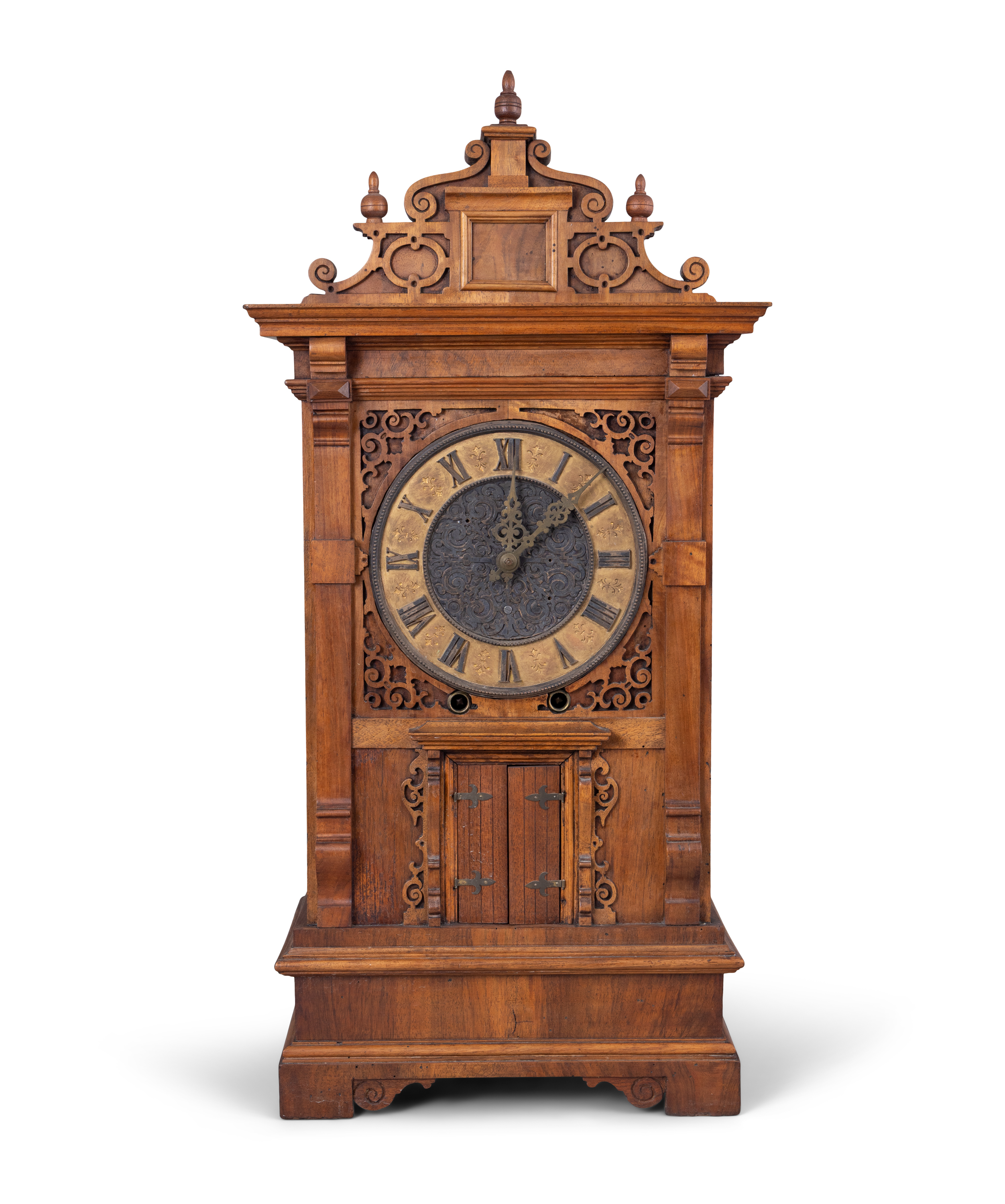 The Black Forest region of southern Germany became a major clockmaking centre during the nineteenth century, exporting widely to Britain and America. Among its best-known makers were Emilian Wehrle (1832–1896) of Furtwangen, whose firm specialised in musical, automaton and novelty clocks. Wehrle’s workshop combined traditional wood carving with increasingly sophisticated mechanical movements, often incorporating bellows driven musical mechanisms and animated figures.