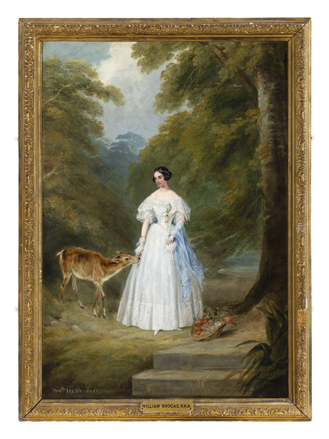 Their eldest son Henry Robert Westenra, 3rd Baron Rossmore (1792-1860) was a notable patron of the Dublin artist William Brocas (c.1794-1868). Brocas was commissioned by Henry to paint a series of the Rossmore estate and small full-length portraits of the family (lots 535-542). The portrait of Henry’s first wife Anne Douglas-Hamilton (c. 1796-1844) (lot 542) the illegitimate daughter of Douglas Hamilton, 8th Duke of Hamilton (1756-1799) has been described by Anne Crookshank and The Knight of Glin as ‘the most distinguished example of his work in this genre’. (Anne Crookshank and The Knight of Glin, The Painters of Ireland c.1660-1920, London, 1979, p. 182.). After Anne’s death, Henry subsequently married his cousin Josephine Lloyd (1806-1872) in 1846.
