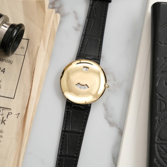 Instead of traditional hands, time is displayed through apertures. The hour appears, then instantly “jumps” at the top of each hour. The result is clean, architectural, almost abstract, a fundamentally different way of engaging with time.