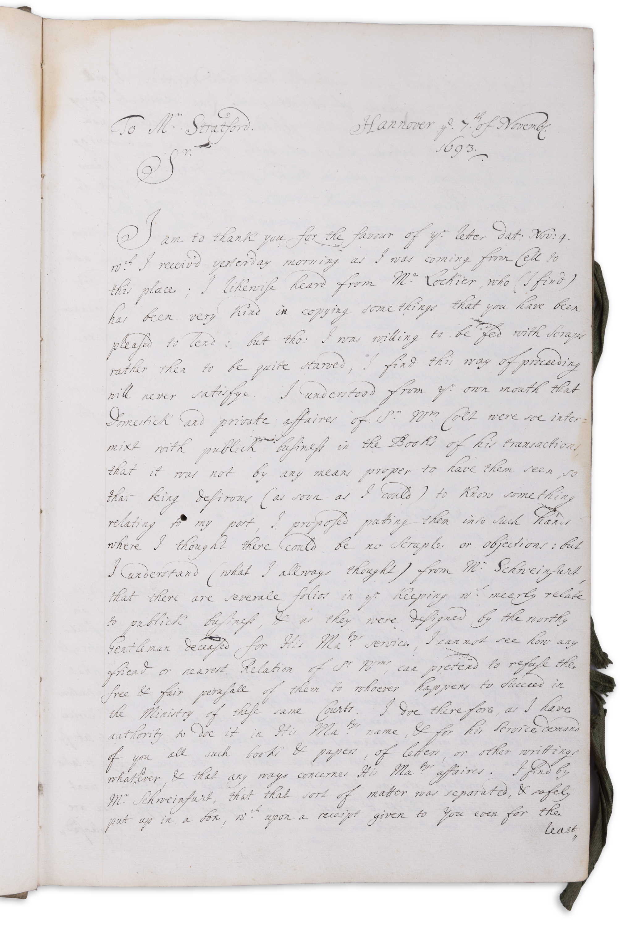 They are not copies made for posterity, they are not archive material filled in neatly at Whitehall by a clerk, but rather the actual reference books these men carried with them and consulted before meetings. They used them to verify treaty terms, and they would have relied upon them to maintain continuity across one of the most consequence diplomatic postings in the late 17th Century Europe.